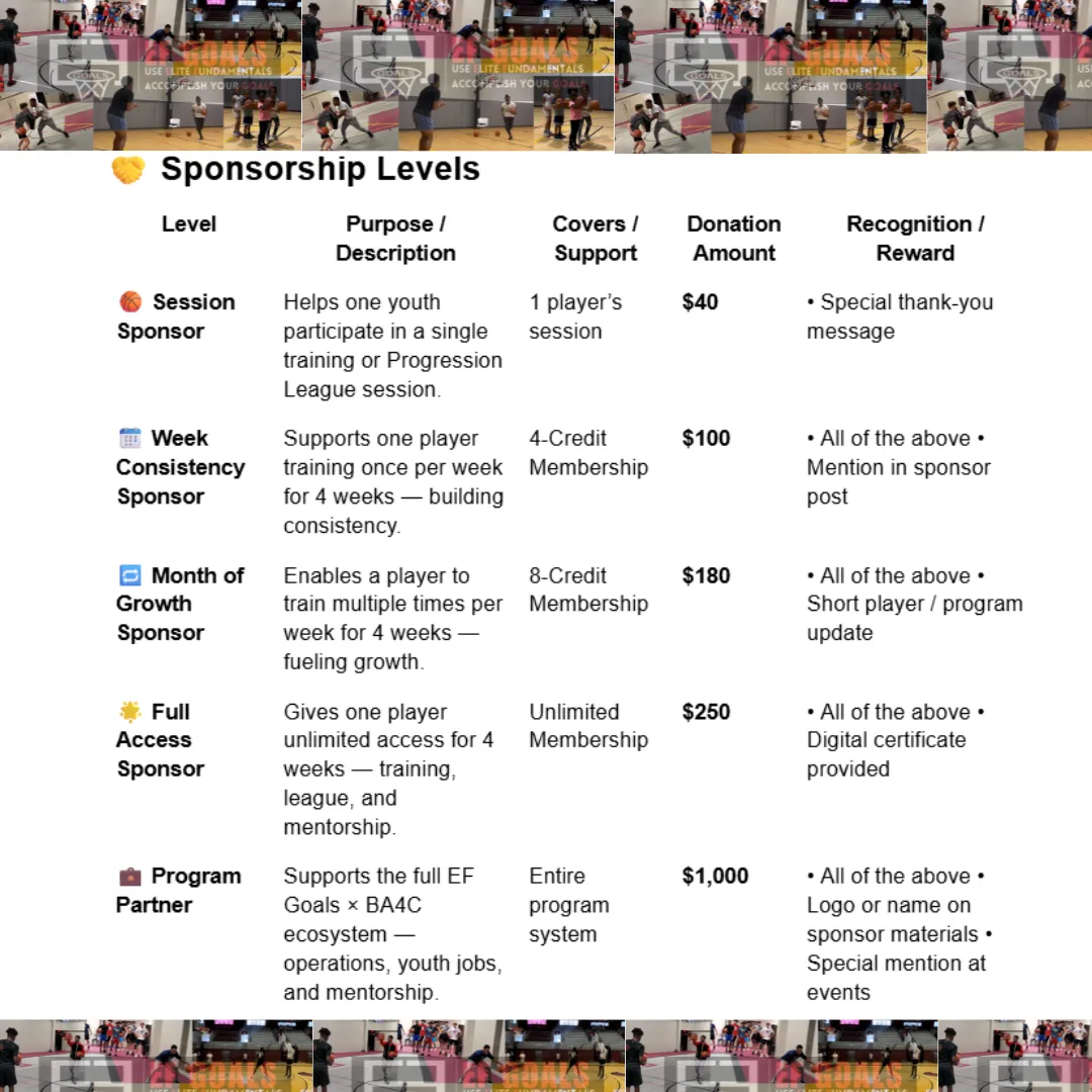 EF Goals exists to equip young people with elite basketball & life fundamentals — practical skills they can repeat every day to reach big goals on the court and in life.